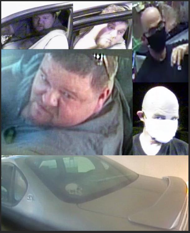 The suspects are believed to be using a silver Chevrolet Impala (1994-1996 model). There is a white skull sticker on the driver’s side rear window and a spoiler attached to the rear.